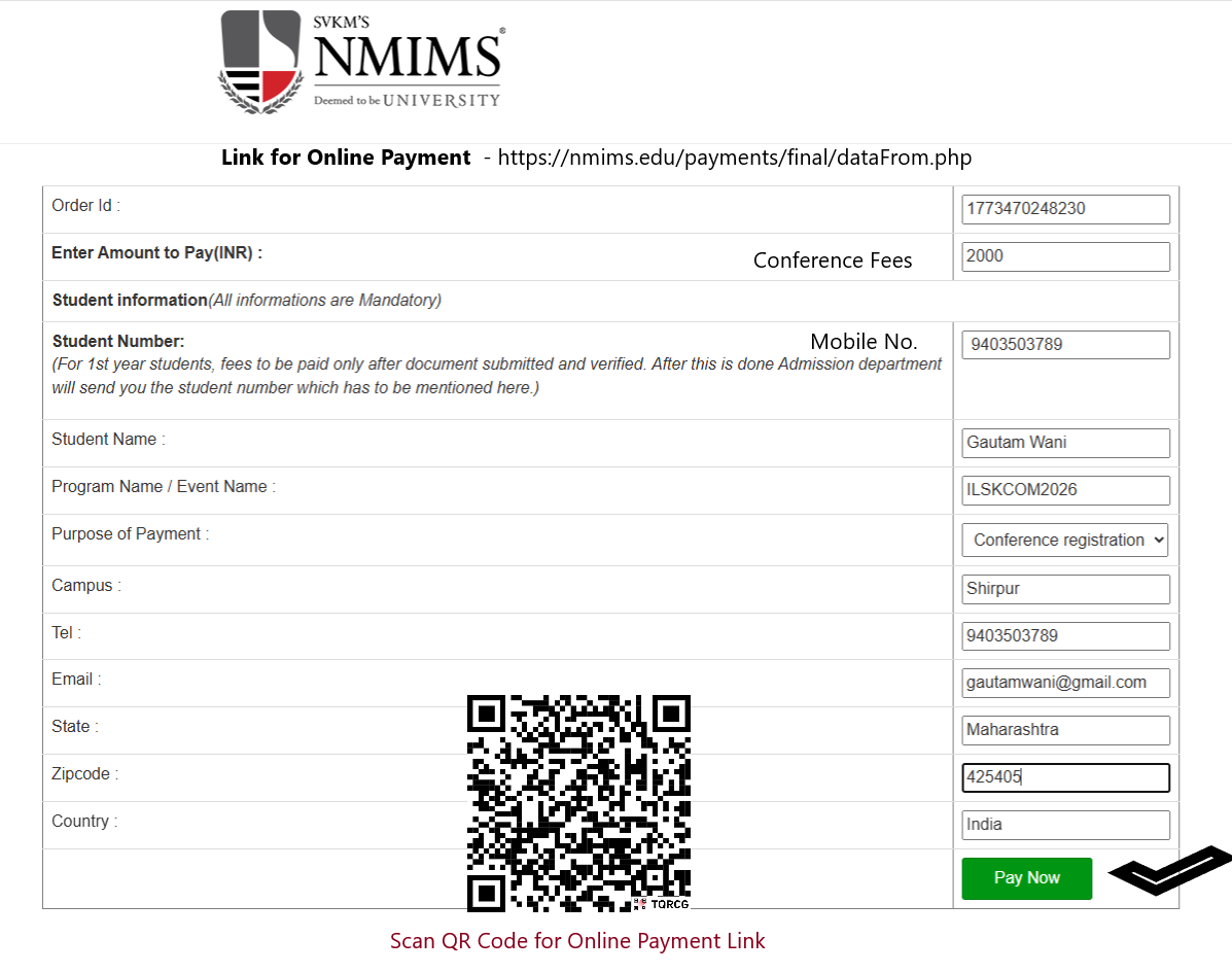- Beneficiary Name : “SVKM’s NMIMS.”